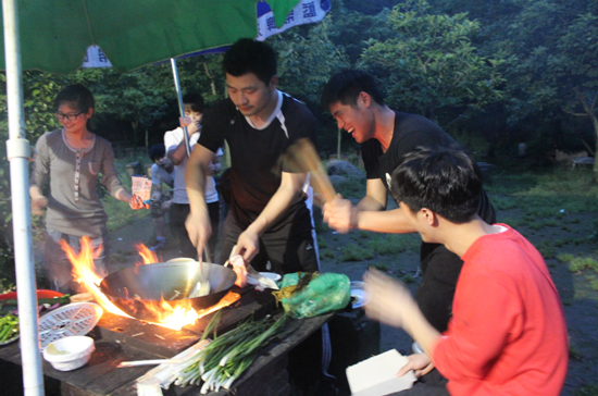 在“徒步登山”任务中,上山时各组队员手拉手挑战体能极限,下山过程中队员们默契配合,利用动力绳翻过本没有路的陡峭山崖,同学们在4个小时的相互鼓励、扶持中完成了任务。在“埋锅造饭”任务中,在家很少做饭的同学们利用有限的食材,第一次亲手做出了一道道“美食”,有的人划伤了手指,有的人被烟呛出了泪水,有的人烫到了胳膊,但这些都在收获的喜悦中烟消云散了。在“野外露营”任务中,各组合力搭建帐篷,晚上轮流守夜,顺利完成任务,保证了队友的安全。在“扎筏泅渡”任务中,各组队员在规定时间内集体讨论“筏子”的制作方法,分工进行材料的准备,亲自动手绑扎,为成功完成任务贡献了每个人的智慧和力量。