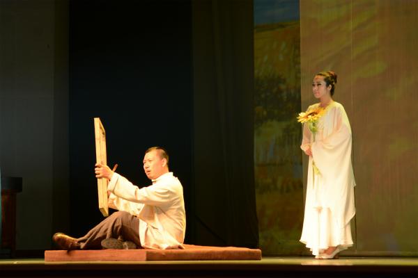拉开本届艺术节帷幕的是由浙江省话剧团带来的专场演出——《燃烧的梵高》。该剧将梵高执着追求绘画艺术、不轻易向生活低头、不放弃自己的梦想与信仰的精神表现得淋漓尽致。全剧一共八个角色,四位演员,坦诚、质朴的表演带领观众接近了一个真实的梵高,观众席上不时爆发出一阵又一阵的掌声。