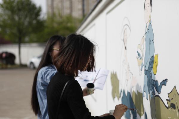 为打造丰富多彩的校园文化环境,认真贯彻执行党委“两学一做”学习教育精神,艺术学院近期针对援外大楼建筑工地外墙开展了一次主题墙绘活动,分院结合专业优势,充分发挥分院学生的专业特长,完成了独具特色的墙绘绘制。