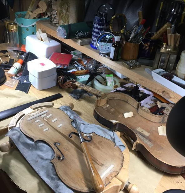 早上7时,胡晓光就来到工作室。他近一个月来一直在修复一把有着300多年历史的小提琴。小提琴的内腔揭开之后,能看到多处修复的痕迹。“一直有人修,就说明一直有人用,是一把好琴。”胡晓光说,小提琴越是年代久远,木材的震动和弹性越好。