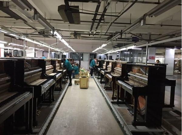 郭腊香站在钢琴前做质检。