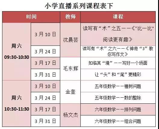 宁波智慧教育邀请宁波市四位名师在周末推出“小学语文读写训练+小学数学思维训练”系列直播课程,帮助同学们掌握解题技巧,提高学习能力。点击“宁波教育”微信公众号菜单-“微服务”-“智慧教育直播”,选择相应课程即可观看。