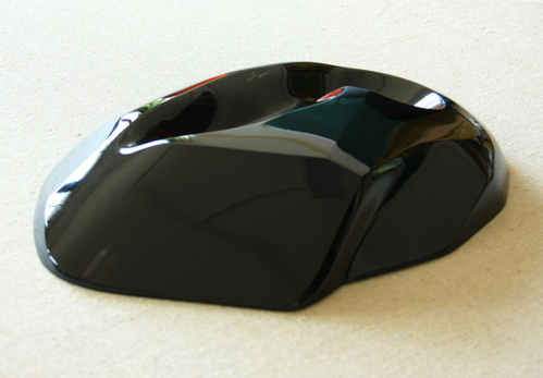 姚炬炜的一些漆画、漆器创作,正是将当代艺术的立体构成,融入传统的髹漆工艺中去。他的作品《脱胎漆面具》,现收藏于福建省美术馆:黑色素髹,简约几何造型,有方有圆,棱角分明,过渡顺畅,光可照人。
