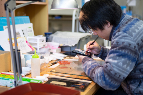 姚炬炜执教于宁波职业技术学院工艺美术品设计专业。可以说跟他学习漆艺的学生们,也是他的众多“弟子”——因为这里实行的是现代学徒制的大师工作室教育模式。
