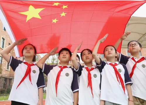 杭州钱塘区各校组织了“我与国旗同框”活动。