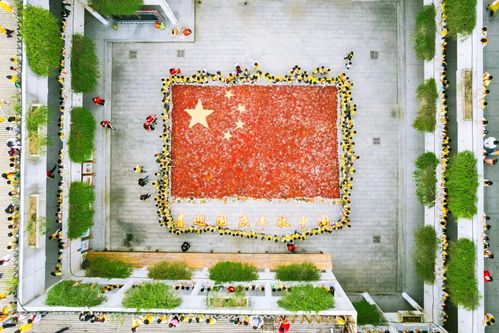 巧手迎国庆,拳拳爱国心,长兴县林城镇天平中心小学的孩子们绘制圆盘,并将它们拼接成一条“百愿龙”,象征着祖国这条东方巨龙正腾飞而起。