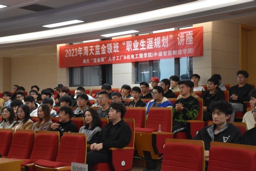 活动邀请陈兴校长为蓝金领们做职业生涯规划讲座。陈校长详细介绍了海天集团的发展历程以及目前主要经营的7大板块。他指出,蓝金领为同学们提供了“换道超车”的机会;同学们要树立自信,坚定信念,把握当下,努力拼搏,要做一个积极向上的人,照亮周围的人;作为宁职院的第一批蓝金领,要珍惜学校提供的学习环境和企业提供的帮扶,通过职业技能的提升,朝着“大国工匠”的方向,发展成为该领域“拧上最后一个螺丝的人”。
