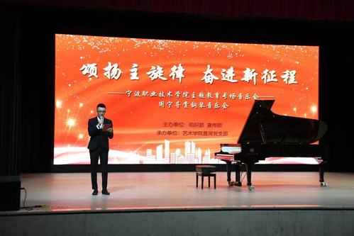 日前,艺术学院直属党支部承办的“颂扬主旋律,奋进新征程”——宁波职业技术学院主题教育专场音乐会在李惠利大剧院举行,校党委副书记马苗金,党委委员、组织部部长李颖出席,艺术学院直属党支部及各分院600余名师生聆听了音乐会。