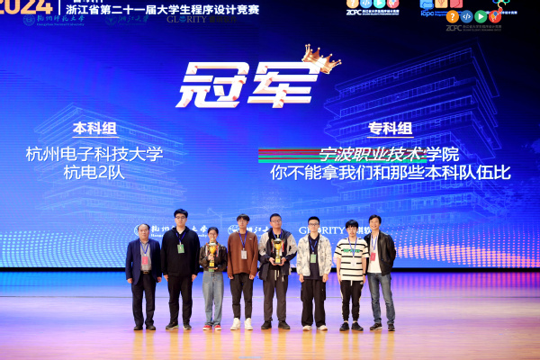 4月13日,备受瞩目的浙江省第二十一届大学生程序设计竞赛在杭州师范大学开赛。本次比赛吸引了全省84所高校的400多支队伍参赛。我校人工智能学院王泽宇、叶玉龙、康旭学生团队一举夺魁,获得高职组冠军,这是该赛事举办以来,学校首次夺得冠军,并获评“高校优秀组织奖”。