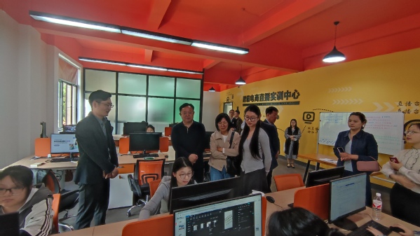考察团一行随后参观了西校区跨境电商展示运营中心,详细了解了凯越订单班情况和校企合作培养人才机制等。