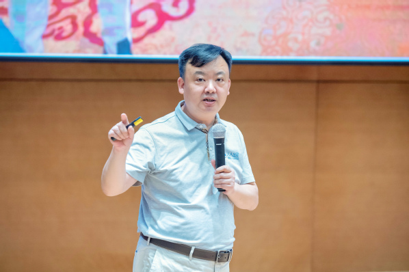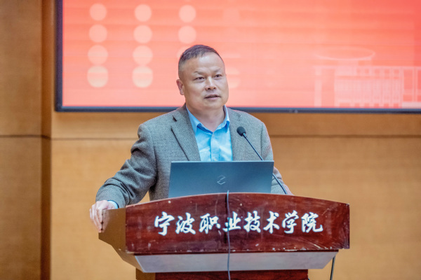周前进作题为《赋能新质生产力,培育创新型人才》的讲座。通过分享一系列大学生创业实战案例以及师生共创帮助企业解决棘手难题的案例,他指出产教融合在人才培养过程中的重要性。他表示,学校应注重培养学生的综合素质,通过课程设置、实践平台搭建等方式,加强与区域知名企业的合作,从而为学生提供更多的职业发展资源与创新创业机会。在培育创新型人才的过程中,学校要始终坚持以学生为中心,以能力提升为本位,重视学生创新思维、沟通表达等能力的发展。周前进还以SDG开放创新马拉松挑战赛为例,详细阐述了高水平专业群建设如何与学校OBE课程实现专创融合、课赛融合,构建创新创业教育新模式。