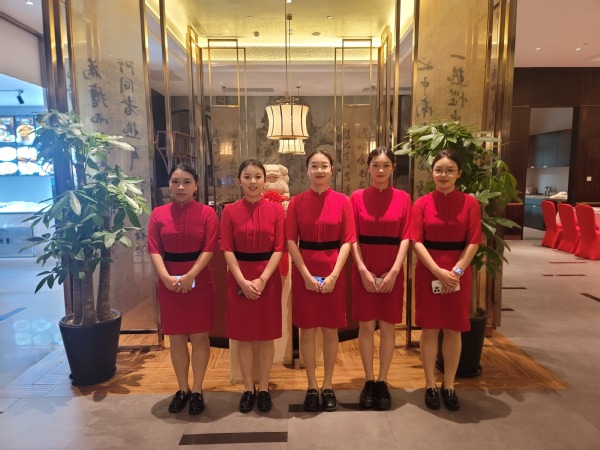 在为期四天的接待服务工作中,同学们展现出了高度的专业素养和敬业精神。他们每天清晨6点便抵达餐厅,开始紧张的准备工作,确保每一位宾客都能享受无微不至的关怀和周到的服务。无论是欢迎晚宴的布置、中西餐厅的接待,还是宾客的引导和餐饮服务工作,他们都以饱满热情和认真负责的态度,确保了活动的顺利进行。
