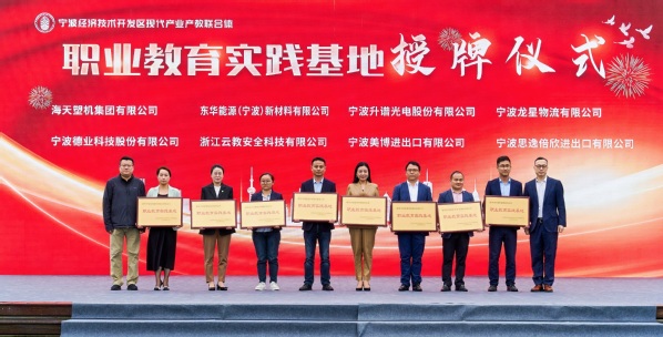 海天塑机集团有限公司、东华能源股份有限公司、宁波升谱光电股份有限公司、宁波龙星物流有限公司、宁波德业科技股份有限公司、浙江云教安全科技有限公司、宁波美博进出口有限公司、宁波思逸倍欣进出口有限公司等8家企业授牌职业教育实践基地。