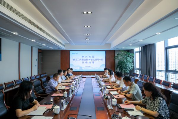 7月10日下午,浙江工贸职业技术学院党委书记张志东、校长余闯等一行人到我校考察交流。我校校长吴向鹏,副校长杨林生、王琪接待来访。