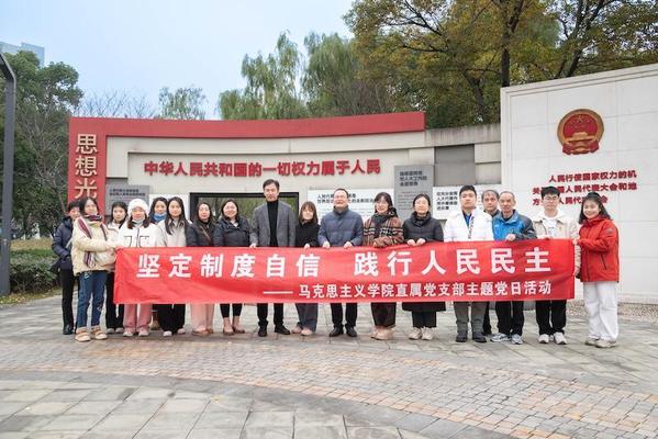 “同学们有来过这里吗?大家知道邱隘镇共有多少名人大代表吗?”马克思主义学院潘雪老师向同学们提问,“下面,让我们带着问题去参观,零距离感受全过程人民民主。”在鄞州区人民代表大会制度主题公园,同学们跟随潘雪老师的脚步,开启了一场别开生面的探索之旅。