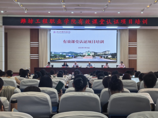为助力潍坊工程职业学院深化课堂教学改革,提升教师教学能力,打造高质量有效课堂,7月10日至12日,宁波职业技术大学专家团队送教上门,为潍坊工程职业学院开展有效课堂认证第一阶段集中培训。此次培训宁波职业技术大学职业教育教师培训学院精心策划,统筹组织,为全校教师搭建了一个集理论学习与实践借鉴于一体的教学质量提升平台。