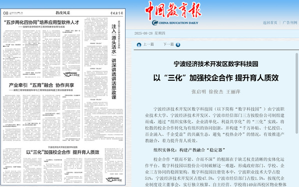 宁波经济技术开发区数字科技园 以“三化”加强校企合作 提升育人质效——《中国教育报》