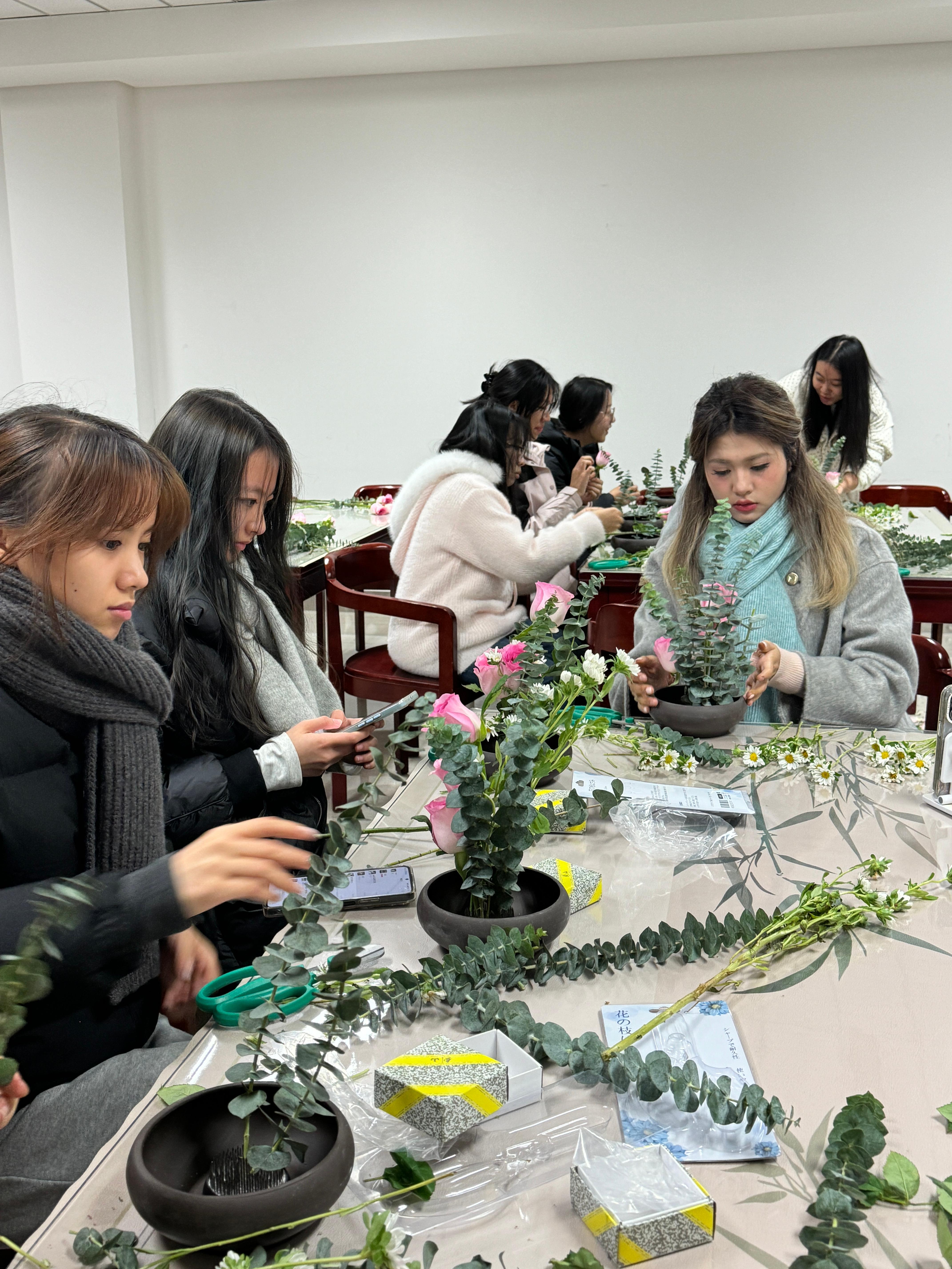 本次“四时花令”花艺课隶属于国际商旅学院“精致学堂”美育品牌项目。该项目秉承“爱美丽、爱生活、有品质”的育人理念,致力于通过体系化、持续性的课程设计,将美学教育融入学生的日常成长轨迹。目前,“精致学堂”已系统开设古琴修习班,并计划陆续推出系统化插花班及其他主题美育课程,逐步构建起“琴、花、茶、书”等多维素养培育体系。