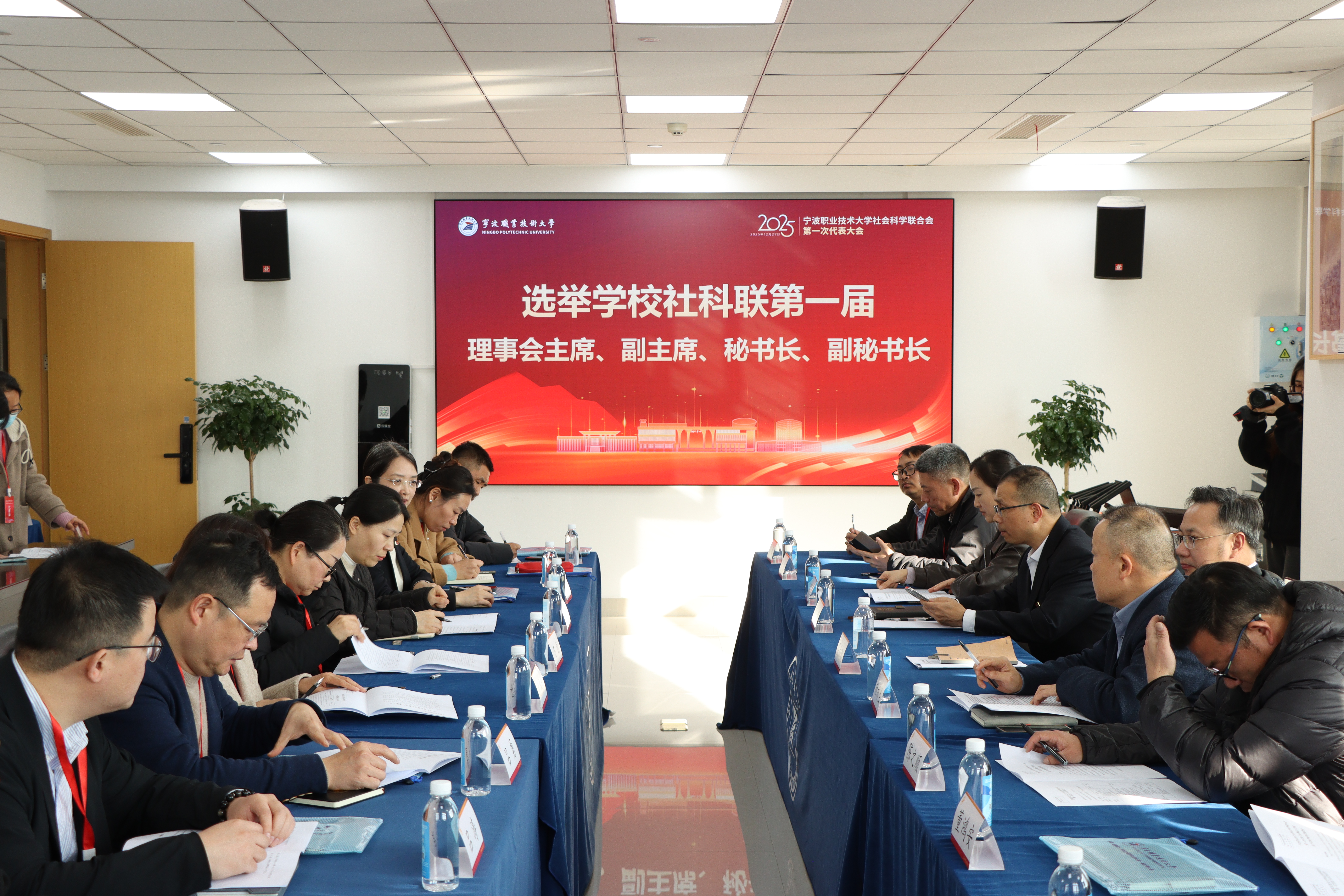 2025年12月29日下午,宁波职业技术大学社会科学联合会第一次代表大会隆重召开。宁波市社科联主席傅晓、校党委书记张慧波、校长吴向鹏、副校长杨林生等领导出席,会议第一阶段由科研处处长胡克满主持,第二阶段由副校长杨林生主持,百余位校内外代表参会。