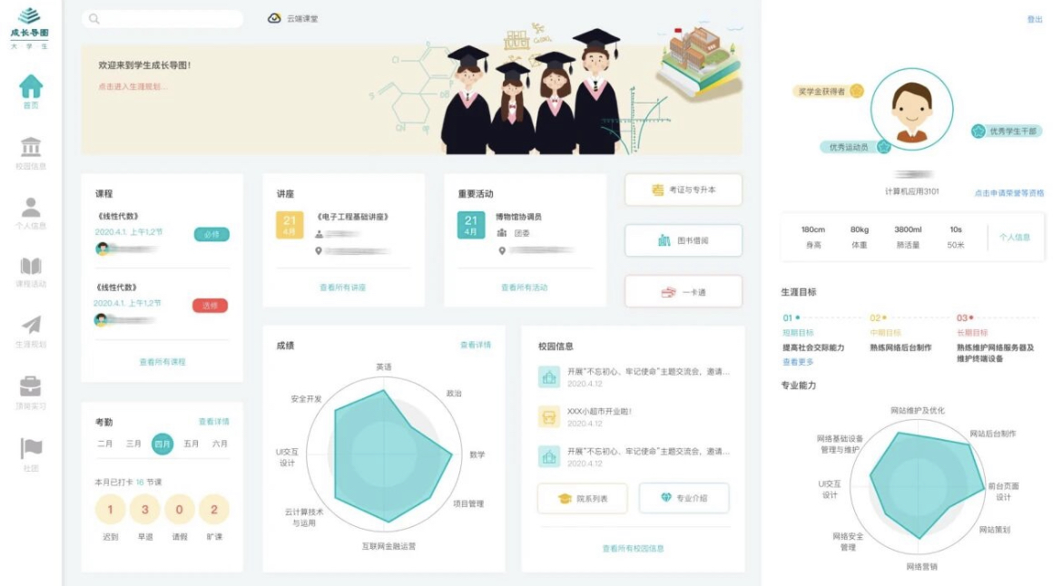 ▲ 大学生“成长导图”系统及学生能力画像