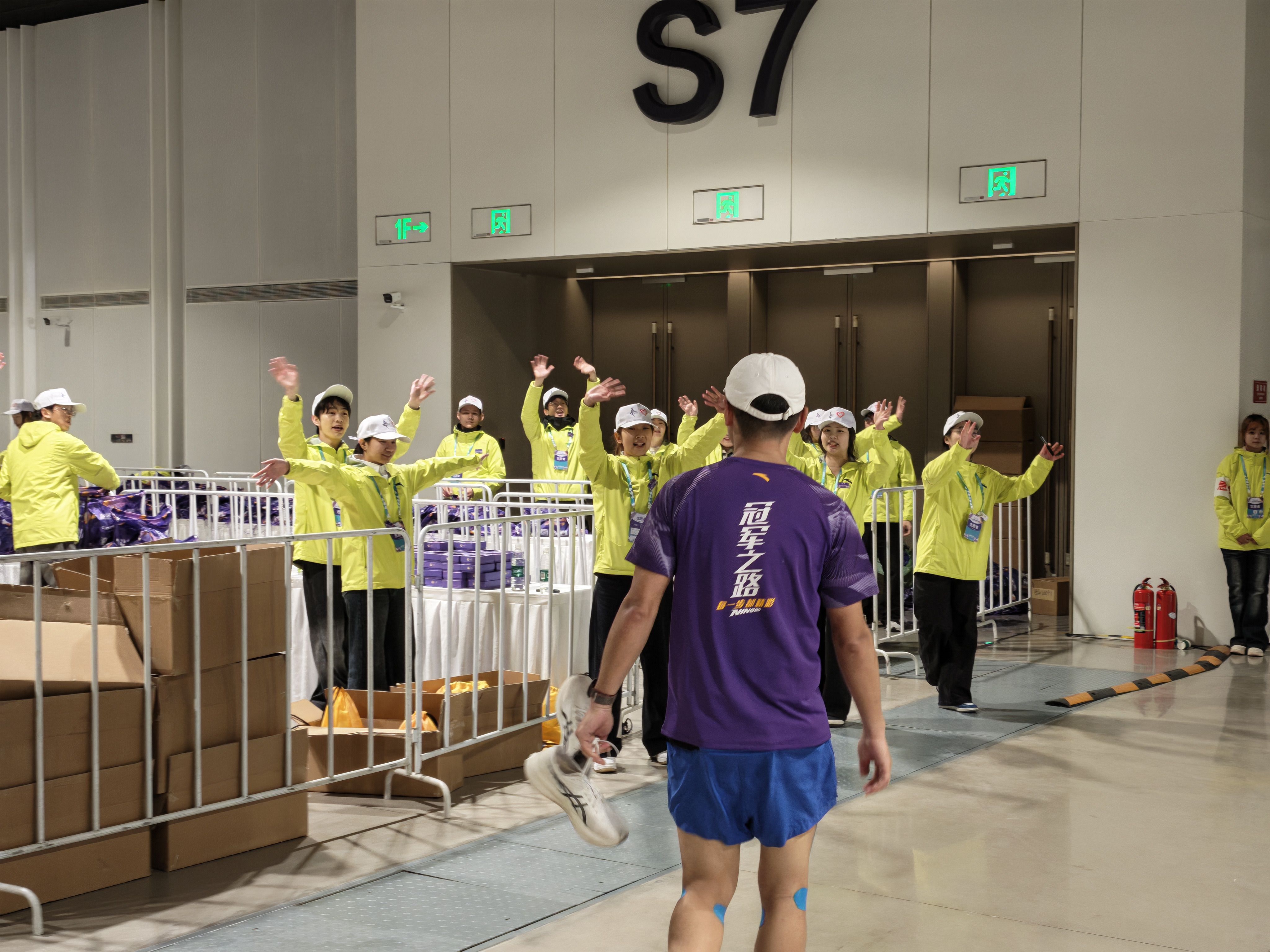 凌晨四点,当整座城市还在沉睡,宁波职业技术大学的校园里已灯火通明。246名志愿者准时集结,乘车奔赴全程终点——宁波国际会议中心。抵达岗位后,志愿者们迅速投入工作,他们分布在完赛发放区、终点管理区、兴奋剂检查区等18个重要点位。志愿者们在裁判的带领下整理物资、检查赛道、布置场地……每一个细节都被反复确认,只为选手冲线的那一刻万无一失。