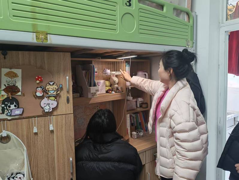 知行合一,方得实效。理论学习后,草莓老师走进学生寝室,开展“一对一”收纳指导。从书桌规整到衣物折叠,从杂物收纳到死角清洁,老师与同学们一同动手改造,将所学技巧真正融入日常起居。原本拥挤杂乱的角落焕然一新,狭小空间变得通透敞亮。大家在欢声笑语中拉近了彼此的距离,也留下了一份独特而温暖的记忆。