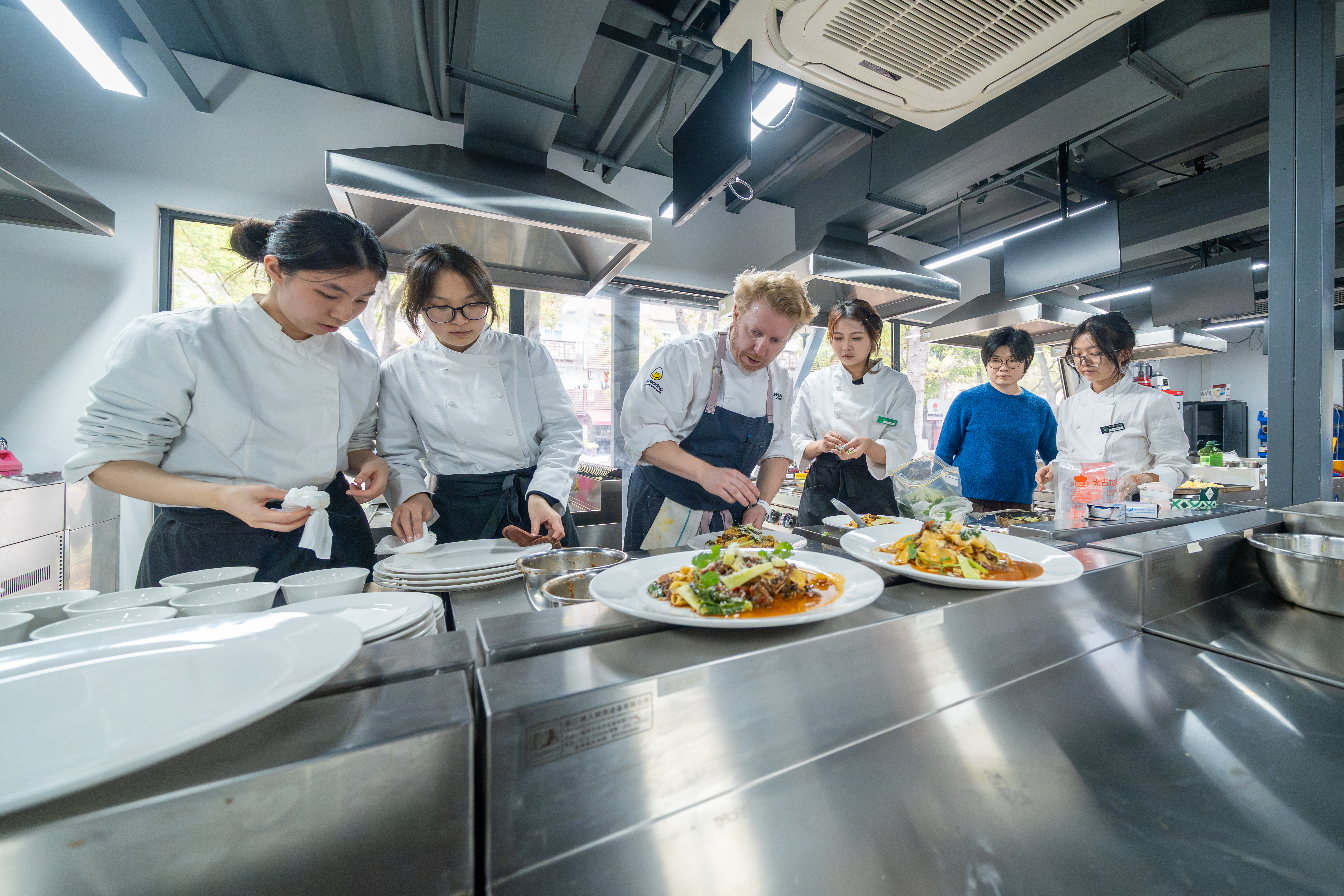 这场展示也深刻映射出国际化职业教育的核心价值。在标准化作业的深度应用中,学生严格遵循英文SOP完成从加工到成品位上的全过程,实现了教学与岗位的“零距离”对接。同时,组织化的团队协作让备料单化为团队的“协作合同”,展现出极强的实战素质。最为触动人心的是“职业化蜕变”的惊艳呈现——当同学们沉稳自信地穿梭于餐桌与厨房之间,他们已悄然完成了从“在校生”到“职业人”的根本角色转换,这种职业仪式感正是人才培养路径上交出的最有力答卷。