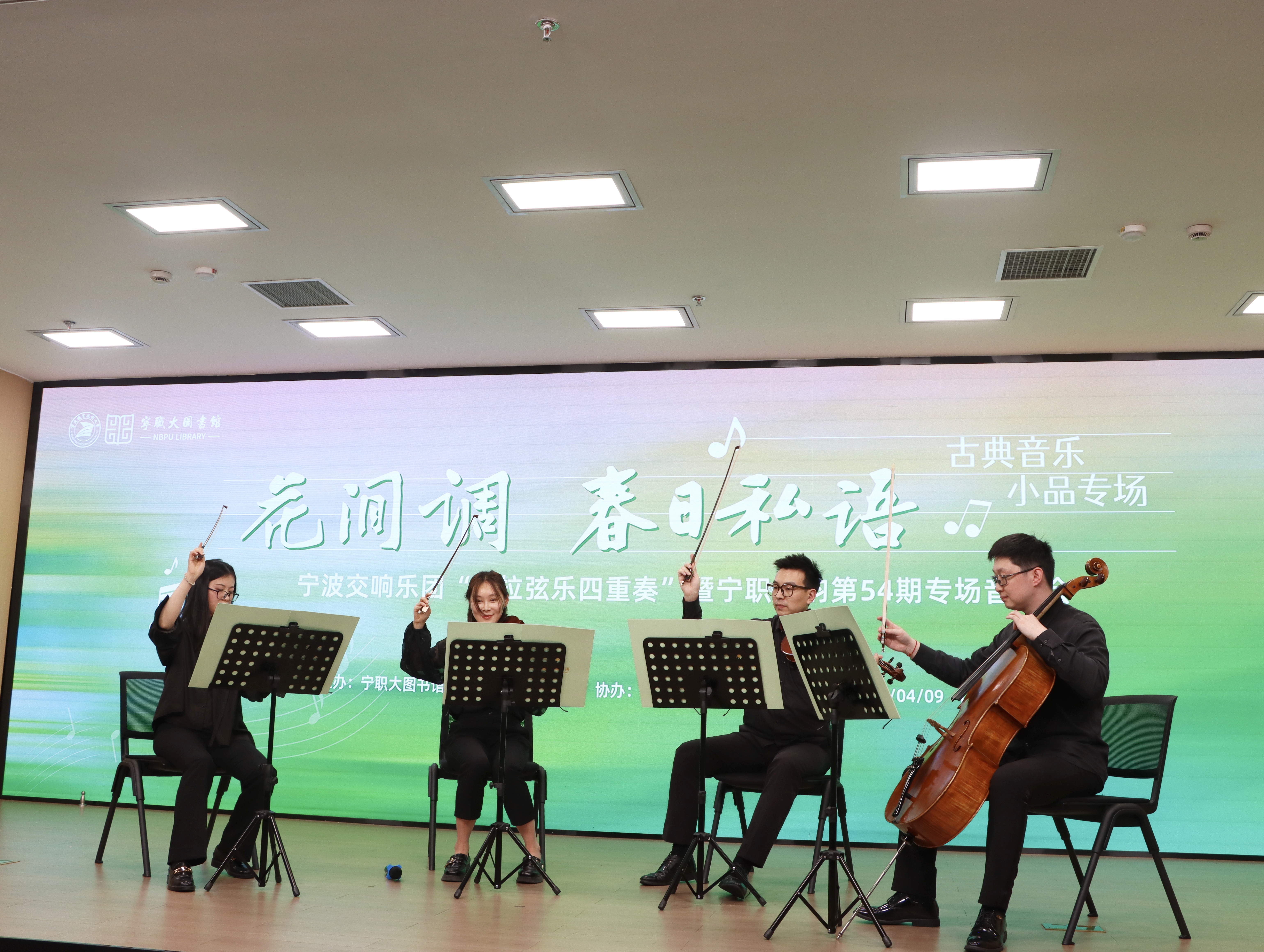 以乐为伴,以阅养心。本次古典音乐会,是图书馆深耕宁职艺韵特色文化品牌、践行跟着音乐来阅读服务理念的暖心活动。立足文化服务阵地本职,图书馆持续联动优质文艺资源,兼顾校内师生文化休闲需求与周边市民公共文化服务体验,常态化打造多元优质的沉浸式文艺乐享活动,融合书香文脉与典雅乐韵,丰富大众精神文化生活,打造沉浸式书香文艺公共空间,焕新校园及片区文化生活质感。