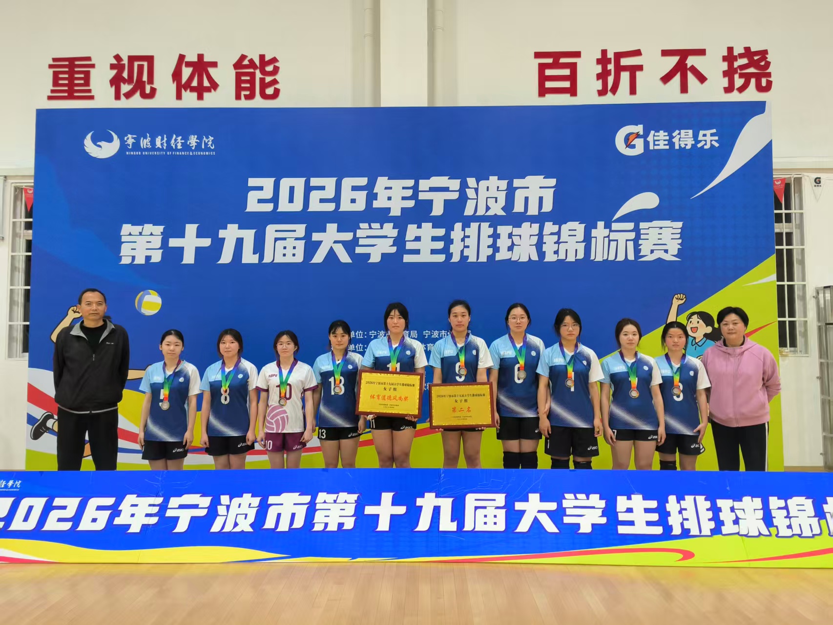 荣耀背后,是排球队数月如一日的艰苦付出。每日三练、周末加练战术配合,多名队员主动放弃节假日休息时间,只为在赛场上多救一个球、多得一分。“团结、拼搏、永不放弃”——这不仅是宁职大排球队的口号,更是他们用行动写下的坚实注脚。而这种精神,也正与宁波职业技术大学“九品十八部”育人体系中的核心理念深度契合。
