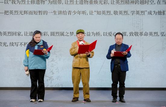 “我为烈士寻亲”“我为烈士修遗物”“戎光宣讲团”等宁波红色公益项目代表孙嘉怿、曹明、陈伟高发出联合倡议。陈红、沙峰、张丁、孙嘉怿、曹明、陈伟高、黄江伟等获聘宁波市“薪火传承导师团”首批导师。朱枫烈士孙女朱容瑢已在此前的活动中先行受聘。因电视剧《沉默的荣耀》热播而走进大众视野的“东海小组”后人,也特意发来祝贺视频。