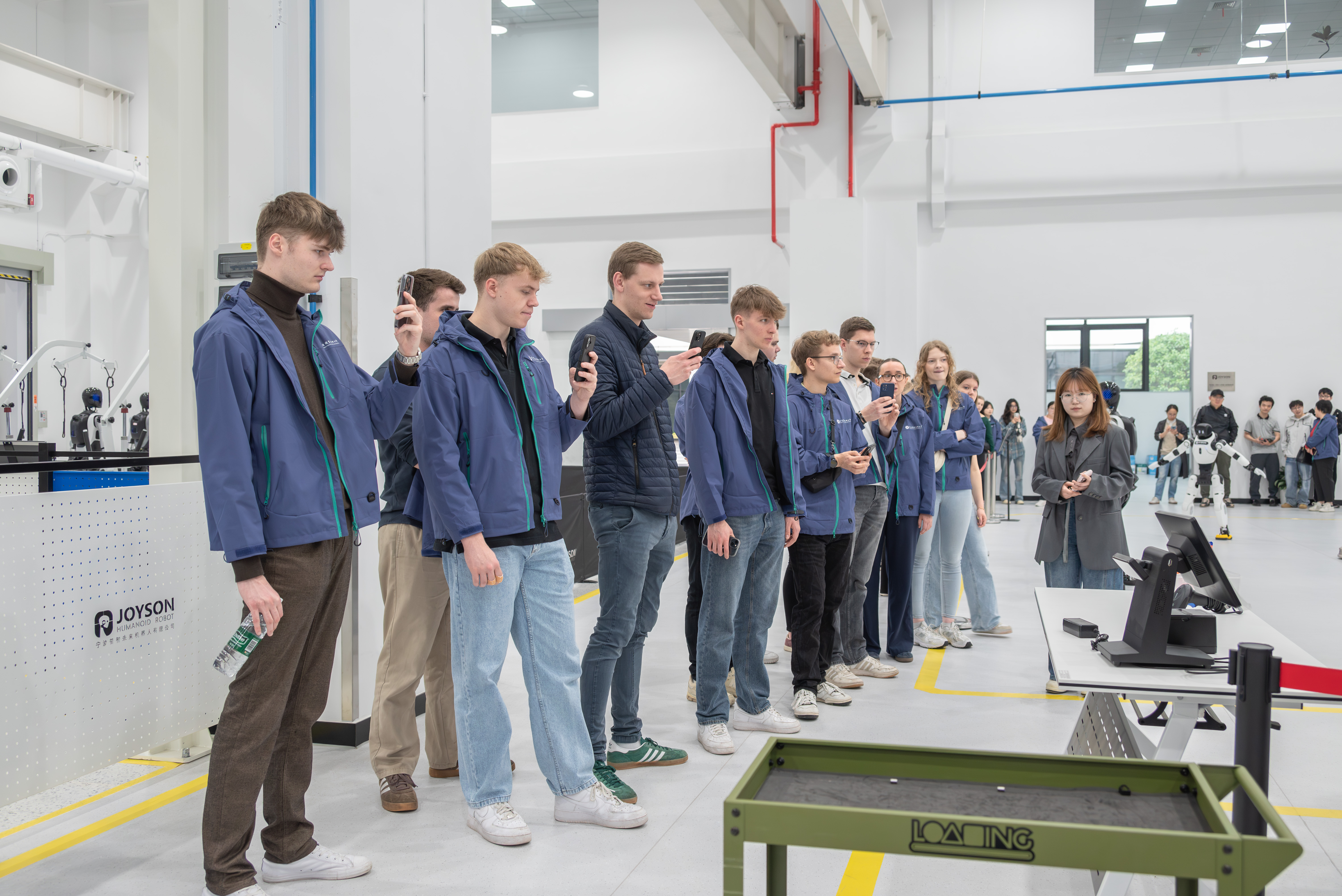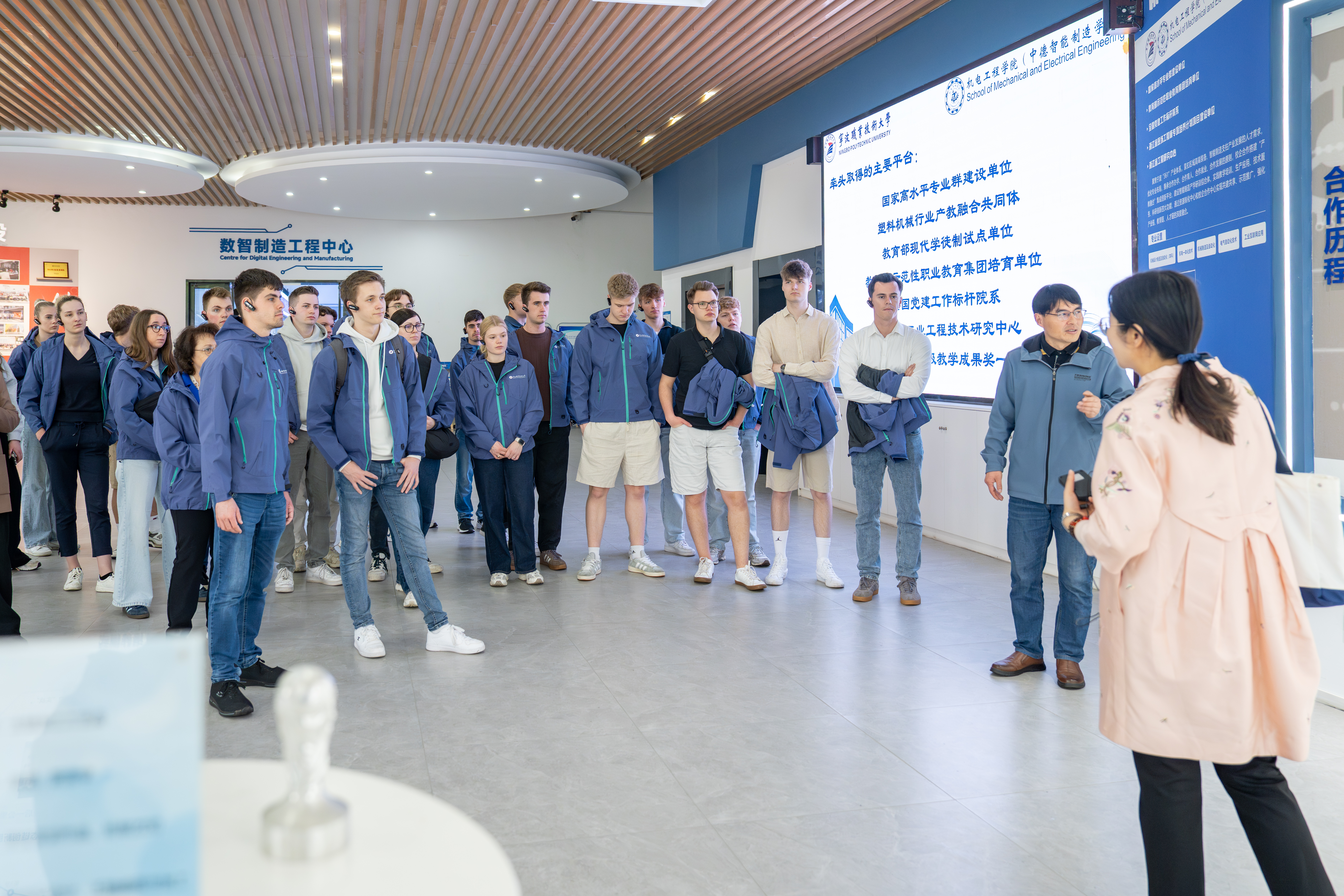 来访期间,德国师生们参访了学校国际文化传播基地、机电工程学院实训基地,近距离观摩先进制造技术教学,探寻中国职业教育及智能制造的前沿成果。同时,交流团师生还走进我校合作企业——宁波普智未来机器人有限公司和宁波拓普集团股份有限公司。在宁波普智未来机器人有限公司,他们看到了机器人技术在各个领域的创新应用,感受到了科技改变生活的强大力量;在宁波拓普集团股份有限公司,当踏入整车全消音 NVH 静音实验室时,眼前的场景让交流团师生们深深震撼。实验室里安静得仿佛能听见心跳声,先进的设备有序运转,展示着中国高新技术企业在追求极致品质和创新方面的不懈努力。交流团师生们久久沉浸其中,不愿离开,纷纷表示这是他们此次行程中最难忘的体验之一。