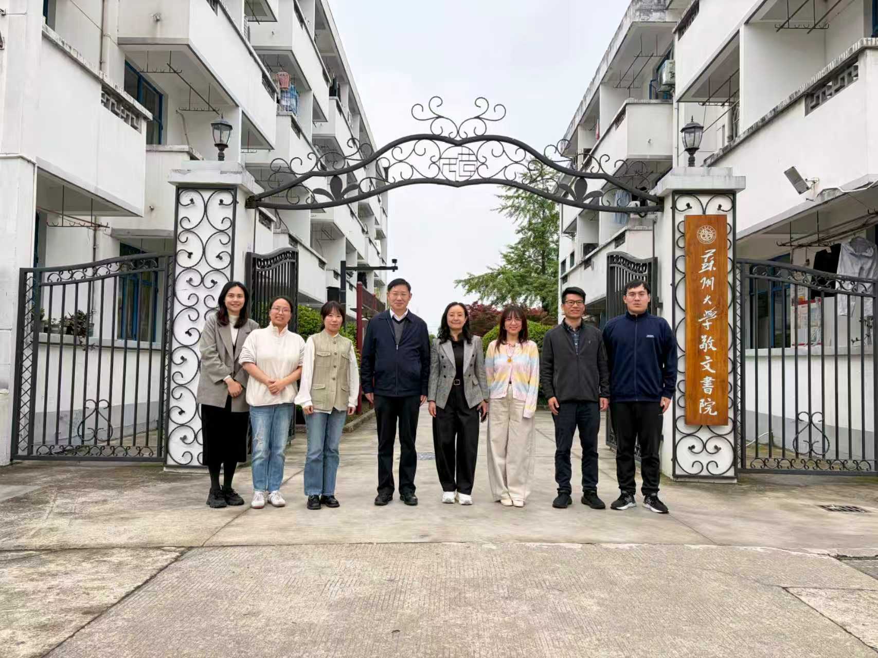 417日,调研组前往苏州大学,苏州大学敬文书院党委书记、院长孙庆民,党委副书记、副院长胡萱等热情接待并座谈。胡萱介绍了敬文书院“学生社区、文理渗透、教授导师、通识全人、创新驱动、海外研修”六大特色育人体系;孙庆民重点分享了书院将苏州大学校训“养天地正气、法古今完人”与院训“为国储才、自助助人”深度融入育人全过程的实践路径,以及敬文讲堂运营、复合型导师团队建设、拔尖学生培养、“书院-学院”双院协同等成熟经验。副校长岑咏对敬文书院的标杆性育人成果给予高度评价。她指出,贺贤土学院作为学校本科层次职业教育改革先行区,在书院制探索、通识教育奠基、跨院协同育人等方面与敬文书院育人理念高度契合,同时立足职业教育类型定位,更突出产业适配性、实践赋能性与技术创新性,此次调研为学院高质量发展提供了宝贵借鉴。