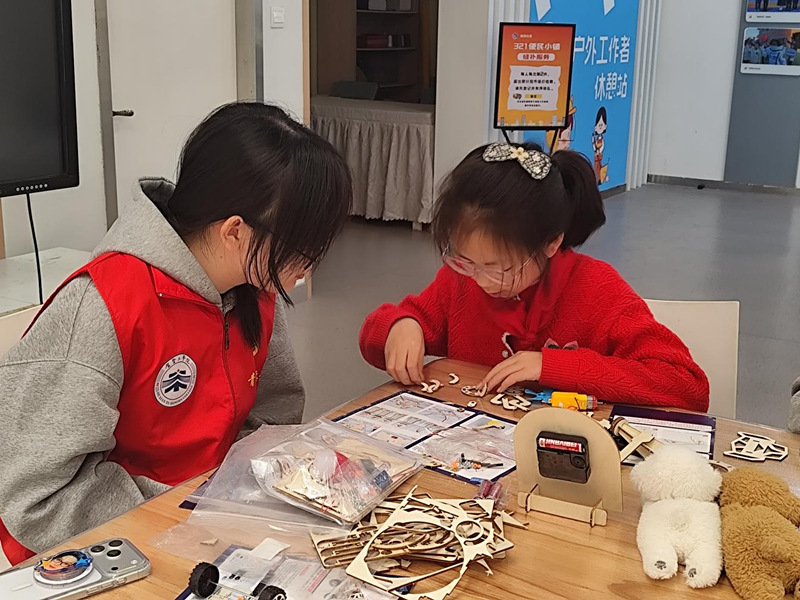 此次托管服务提质升级,是校地共建从“基础看护”向“专业育人”跨越的关键举措。项目依托该校贺贤土学院职教本科生资源,精准对接学院首批6个本科专业,将专业知识转化为小学生易懂、爱学、乐参与的趣味实践课程。小小工程师黏土塑形课让孩子感知材料成型原理,点亮小灯泡电路课以安全实验启蒙电路知识,小小贸易家跳蚤市场在模拟交易中理解贸易规则,积木机械师搭建课解锁杠杆、齿轮等机械传动奥秘,小小快递员配送挑战认知货物分拣与路线规划,魔法实验室化学课在趣味实验中区分物理变化与化学反应。