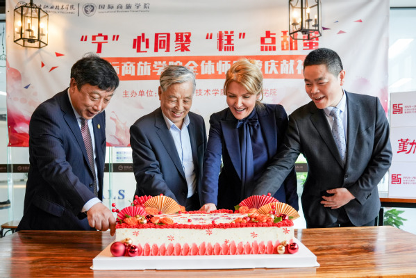 “Happy Birthday!”4月26日上午,丝路咖啡吧爆发出一阵热烈的掌声与欢呼声。中国科学院院士、我校名誉校长贺贤土,塞尔维亚双元教育和国家资格框架办公室执行主任加布里耶拉·格鲁季奇(Gabrijela Grujić),宁波市教育局副局长陈金辉,学校党委书记张慧波共同切下学校办学65周年校庆蛋糕,为学校送上满满的祝福。加布里耶拉·格鲁季奇此行应海天集团邀请来甬访问,恰逢学校办学65周年校庆之日,在海天集团组织与发展总监、海天大学...