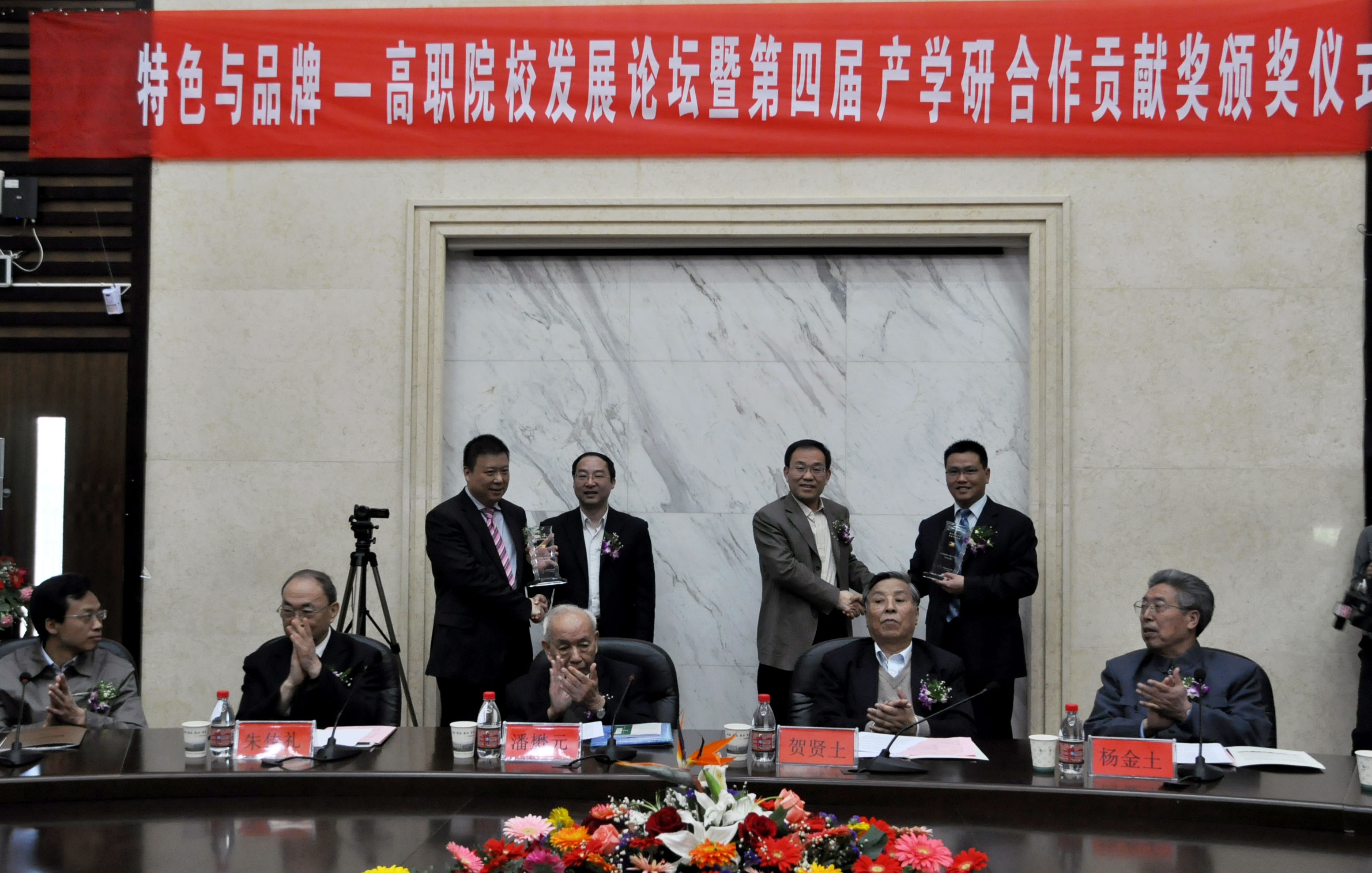 在本届获奖的企业家中,有与学院签署校企合作协议,与机电类专业共建自动生产线,装配、机电一体化创新、综合电气控制等实训室,合作开发专业核心课程和实训项目的亚龙科技集团有限公司董事长陈继权。亚龙集团作为中国教育技术装备主要生产基地之一,与全国200多所高职院校建立有校企合作关系。陈董事长说:“高等职业教育一定要注重产业合作创新,学生毕业后是与社会合作的,他们在融入社会的同时,更要服务社会、奉献社会。对于企业而言,产业文化的创新尤为重要,而促成其发展的关键因素就在于产学研结合。作为示范性高职学院,宁职院的校企合作以及学工交替的办学特色起到了很好的引领作用”。