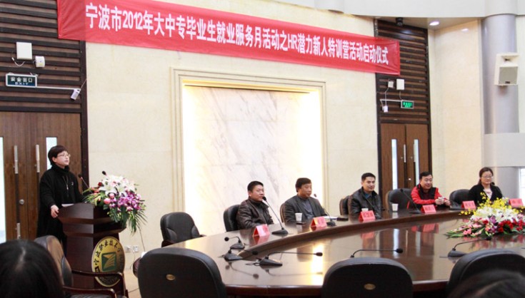 12月19日下午,由我院招生就业办、北仑人力资源基地、宁波众信人力资源公司承办的“宁波市2012年大中专毕业生就业服务月活动之HR潜力新人特训营”活动启动仪式在我院国际会议厅隆重召开。出席本次活动的有学院常务副院长张慧波、宁波市人才市场管理办公室副主任陈洪伟、学院招生就业办主任周晨、宁波众信人力资源公司负责人。
