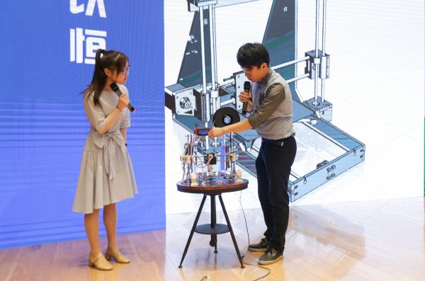 “这是我自己设计的,它有一个专门处理程序的软件,能把三维图形转化为打印机能读懂的程序,加工以后制作出来……”摆在苏定波旁边的3D打印机正在忙碌工作着,“呆萌的大白”初具模样,受到了学弟学妹们的喜欢,大家纷纷拿出手机拍照。