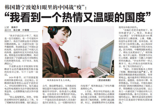 宁波职业技术学院国际学院韩语专业的外籍教师郑然雅在她的抗疫日记里,写下了这样一段话。