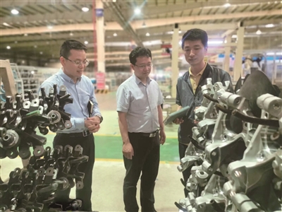国家名师孙向东(左)带领团队为企业提供技改服务。