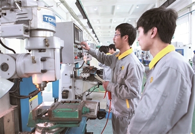 宁波职业技术学院海天(机电)学院学生在海天集团捐赠的实训大楼内实训。