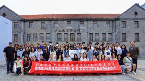 驻足甬江女中百年门堂,追寻文化先贤百家辨思。为进一步推进文教旅深度融合,发挥产学研共建基地优势,促进宁波优秀师德文化传播,近日,宁波甬江女中旧址教学楼建成100周年纪念首场活动之“屠呦呦科学精神师德研讨会暨校馆院共建合作基地签约仪式”在宁波教育博物馆隆重举行。来自宁波大学、宁波职业技术学院、宁波教育学院、宁波卫生职业技术学院、宁波二中等全市科研院校的十余名专家代表,和宁职院旅游管理专业近60名大学生代表参加了活动,一起重温了这座教学楼拜年来的历程以及屠呦呦等宁波学界名师的师德精神。