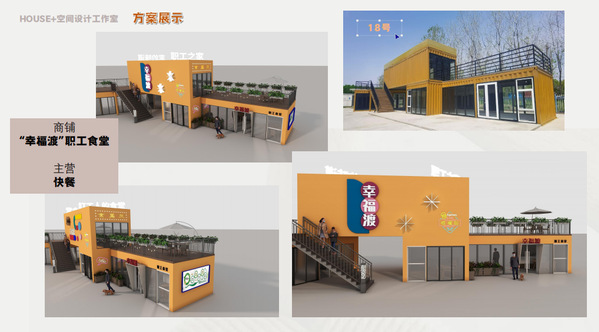 本公益项目自4月份启动以来,“HOUSE+”设计工作室学生在杨赪、陈哲、贺达三位教师的指导带领下,充分发挥专业优势,严格落实“一户一策”服务原则,经过现场走访和勘测了解商铺改造需求,绘制方案CAD图纸和三维效果图,最终敲定了皖享小吃、甬爱E家、“幸福渡”职工食堂等10家商铺的整体外观设计方案。团队根据商铺种类的不同,设计了绿色、白色、灰色、黄色、玫红色5种色调,有机融入了不同商家的经营理念和餐饮特点。