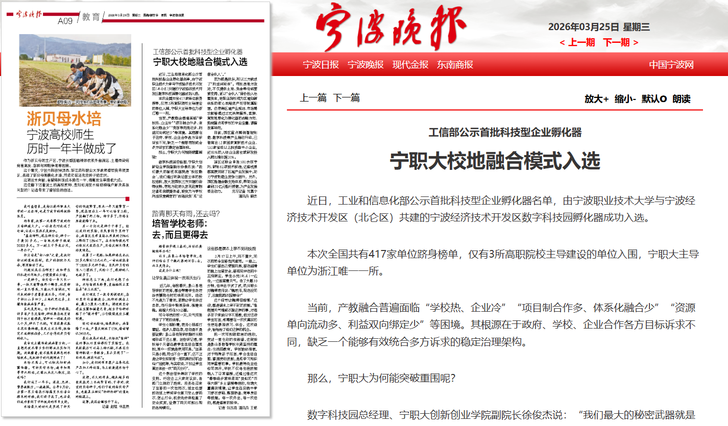 数字科技园总经理、宁职大创新创业学院副院长徐俊杰说:“我们最大的秘密武器就是‘股权融合’,我们通过明确运营主体的股权结构,放大政园校三方共建的独特优势,使地方政府从宏观政策制定者和资源提供者,转变为与学校利益深度绑定的‘战略股东’和‘运营合伙人’。”