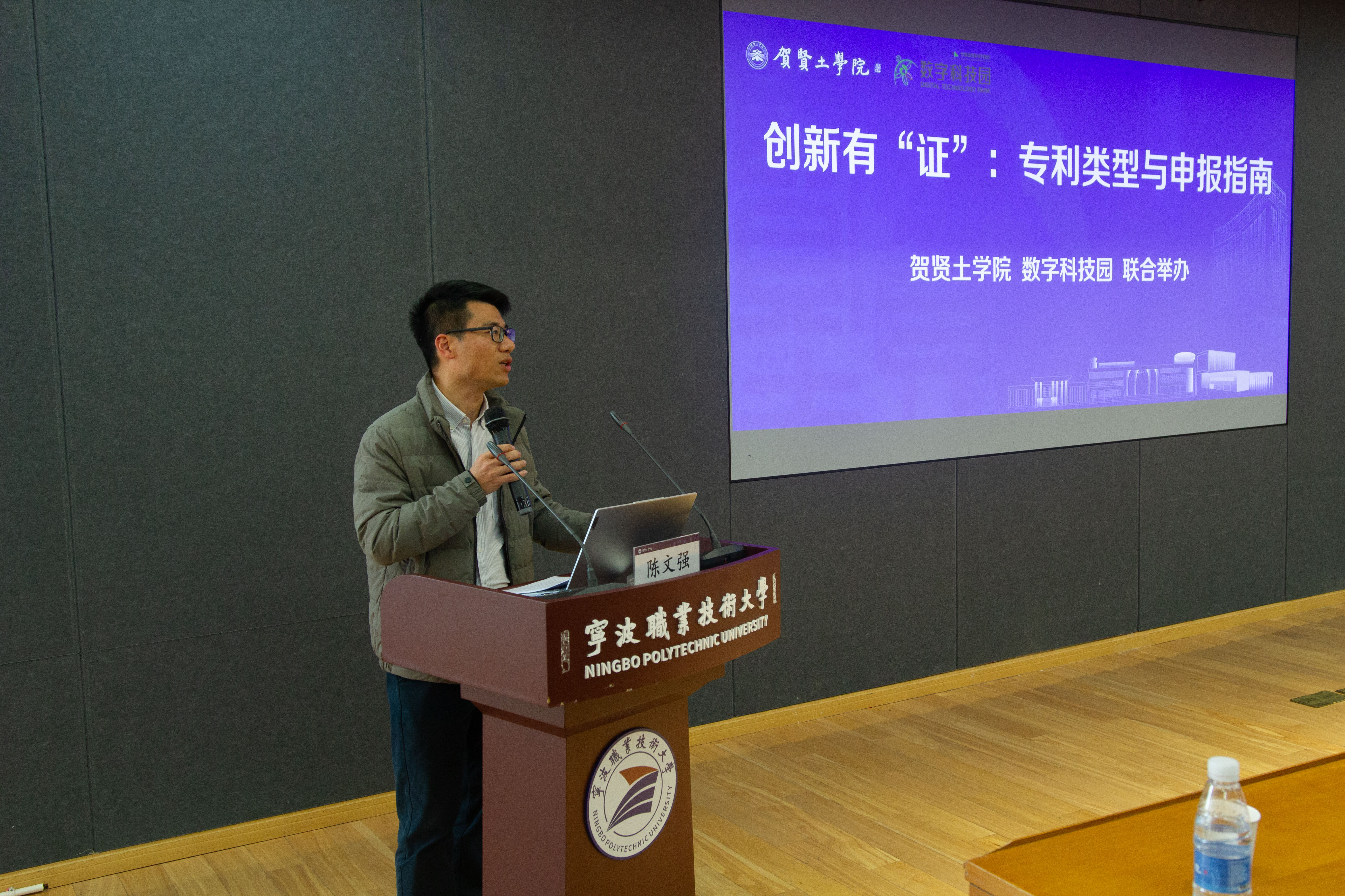 为深化知识产权教育,提升科研创新与成果转化能力,3月25日下午,贺贤土学院联合数字科技园,在联盟大厦天童厅顺利举行“创新有‘证’:专利类型与申报指南”专题讲座。本次讲座面向各研究机构师生、数字科技园企业研发与知识产权管理人员开展,由贺贤土学院副院长葛东东主持,浙江智翔联合专利代理有限公司执业代理师、合伙人陈文强主讲,吸引近百名师生与企业代表到场参与。