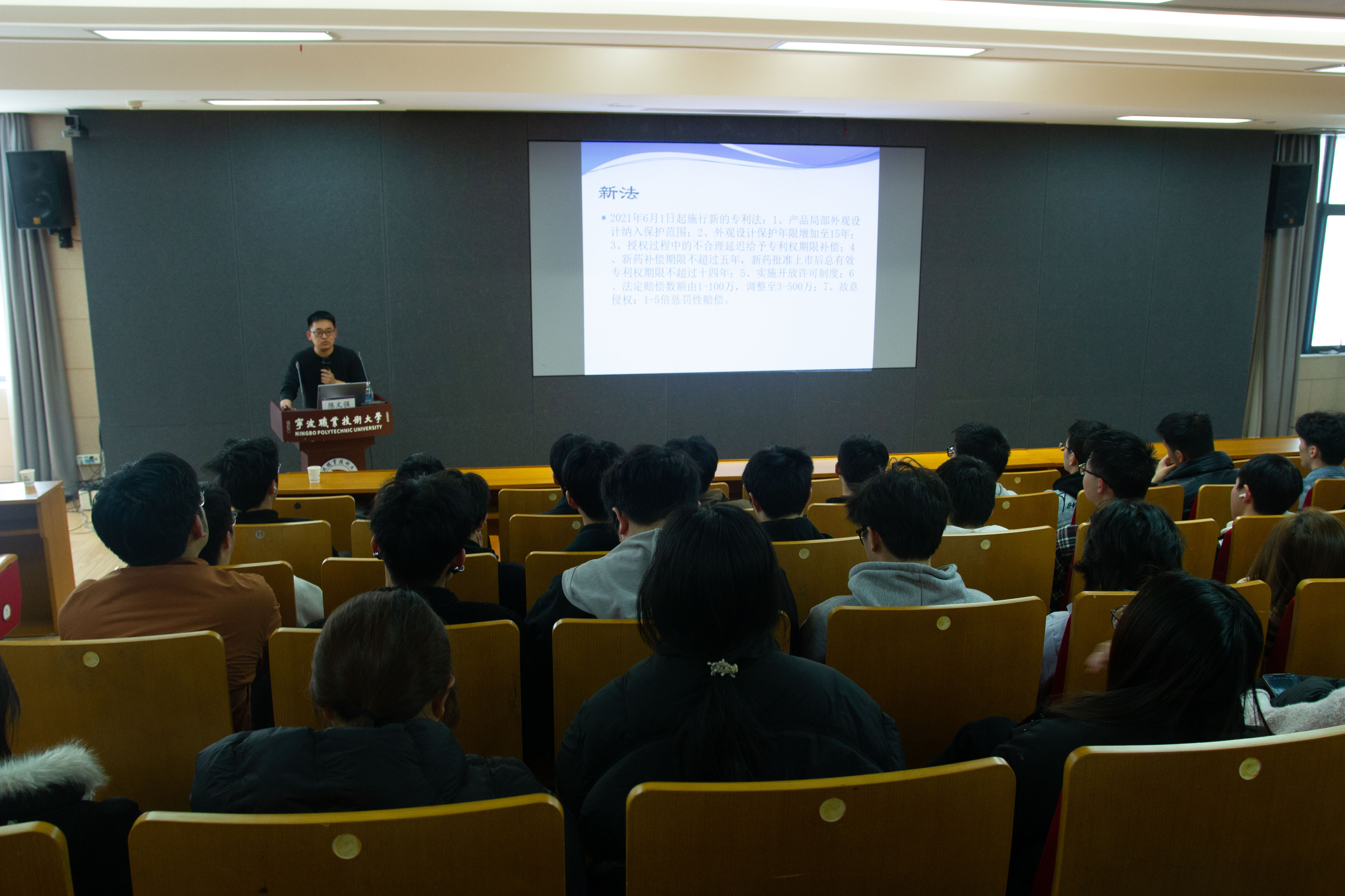 互动环节,参会人员围绕专利检索、技术交底书撰写、创新点挖掘等问题踊跃提问,主讲人逐一细致解答,现场交流氛围热烈。机制4251班魏岩皓同学表示,讲座厘清了专利申报的关键误区,让大家明白精准定位专利类型、充分体现创造性,是提升申请质量与授权率的核心。