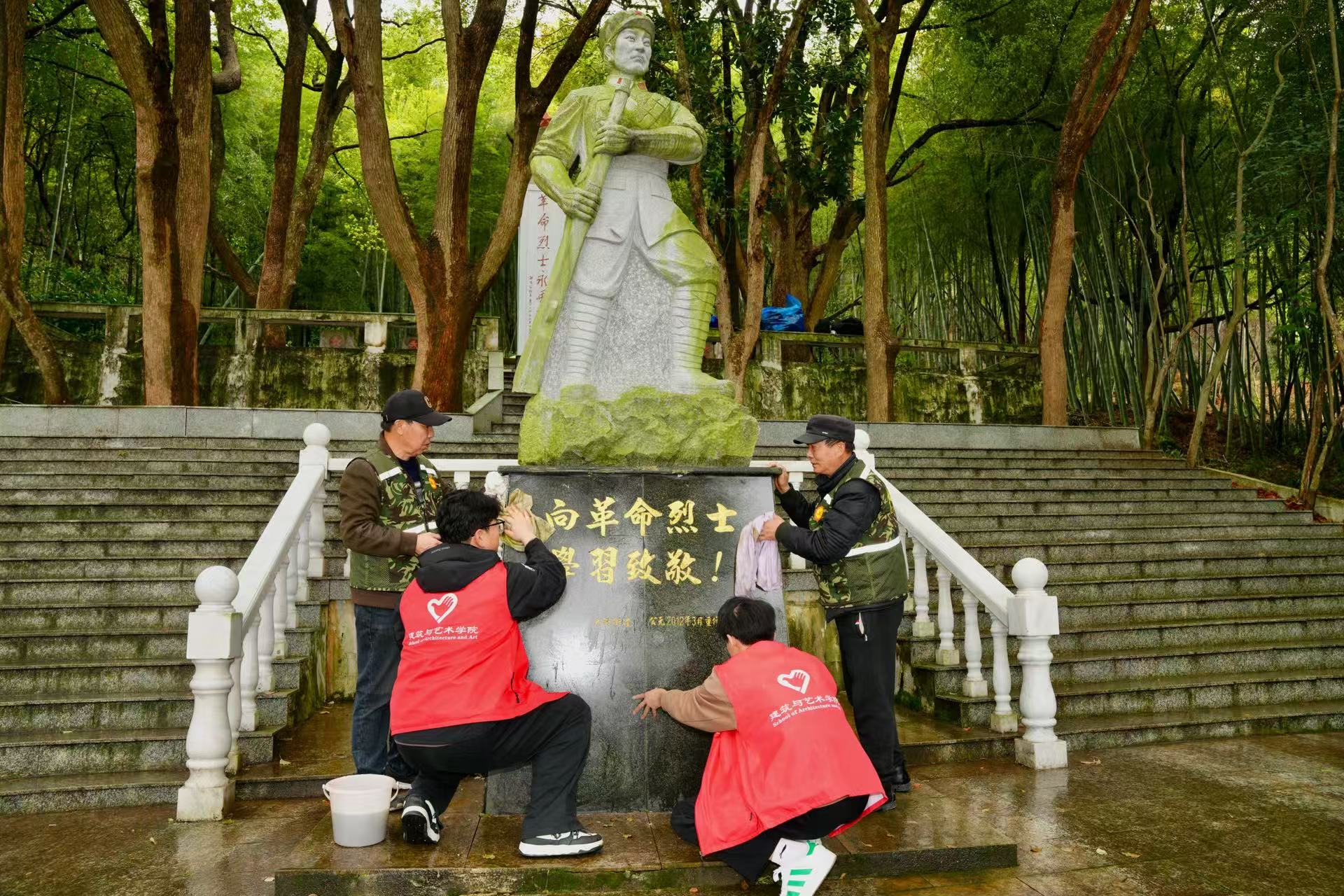 在清明节即将来临之际,为深切缅怀革命先烈、传承红色基因,3月27日,建筑与艺术学院党员师生与北仑区关心下一代协会老战士关爱教育团一同走进大碶莘峰烈士陵园,开展烈士墓碑描红及陵园清扫志愿服务活动。学院学生党员、入党积极分子与老战士代表等20余人齐聚烈士墓前,通过描红碑文、清扫陵园、敬献鲜花、聆听故事等形式,以实际行动致敬英烈、寄托哀思。